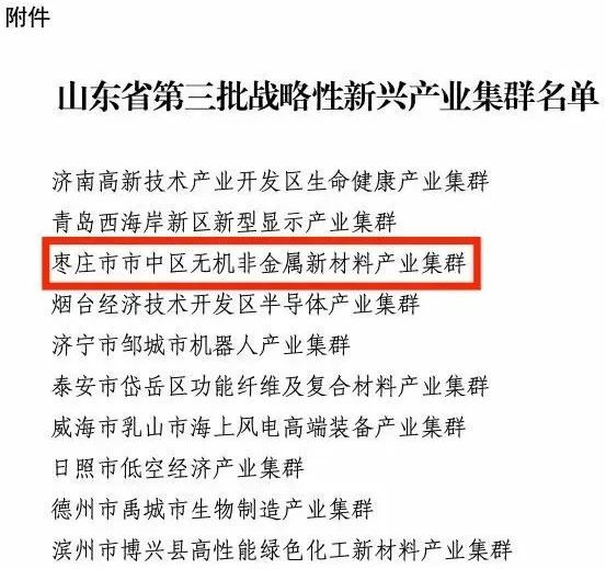 喜报丨枣庄市市中区无机非金属新材料产业集群成功入选山东省战略性新型产业集群