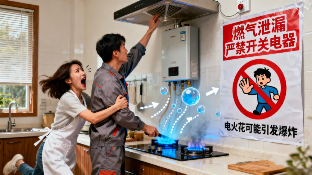 1.迅速处置:如闻到疑似燃气异味(类似臭鸡蛋味),请立即关闭燃气总阀,迅速打开所有门窗通风,严禁启闭任何电器开关(如开灯、关灯、使用排风扇、拨打电话等),防止产生电火花。