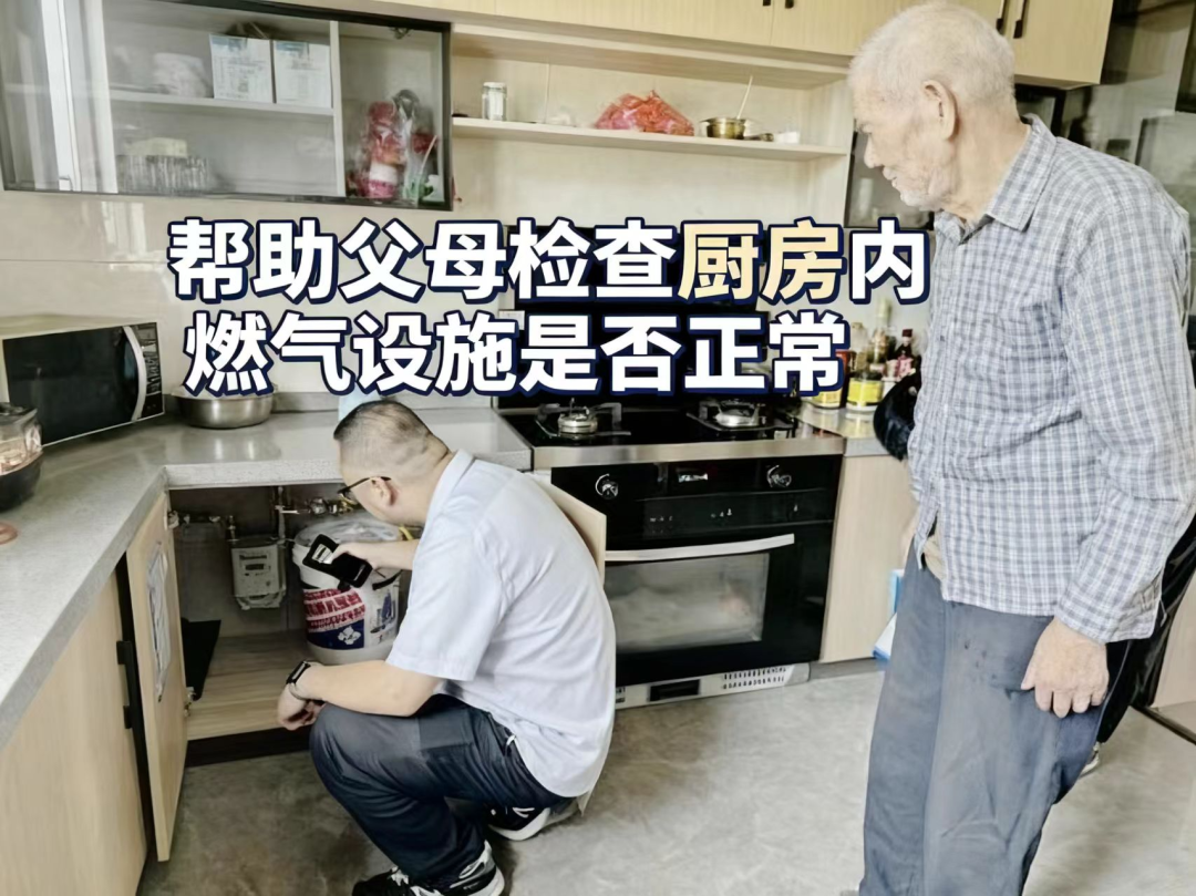 3.协助排查:假期回家探望父母时,帮助父母检查厨房内燃气设施是否正常,各类燃气具是否到期需要更换。