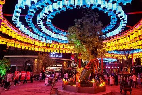 城景融合,拓展保护维度:实施古城缓冲区风貌管控,整治提升周边街区环境,确保新旧建筑和谐共生,同步打造水清岸绿景美的运河风光带,实现古城保护从“点”到“面”的升华。其中,台儿庄区渔灯巷文旅街区项目获评山东省第二批城市更新创新案例。源自明代兴起有500余年历史的非物质文化遗产“渔灯节”,以运河渔灯文化为主题,通过环城河与台儿庄古城隔河相望,注重挖掘自身特色,最大限度保留历史印记。以千年运河渔灯文化为引领,融合夜景游乐、演艺美食、高端酒店、民宿聚集群等多种业态打造特色文旅街区。项目总占地面积约120亩,总建筑面积约12万平方米,总投资约10亿元。目前已获得省级第二批省级旅游休闲街区、省级夜间文化和旅游消费集聚区等荣誉称号。2024年接待游客超300万人次,暑期单日最高客流达3.5万人次。