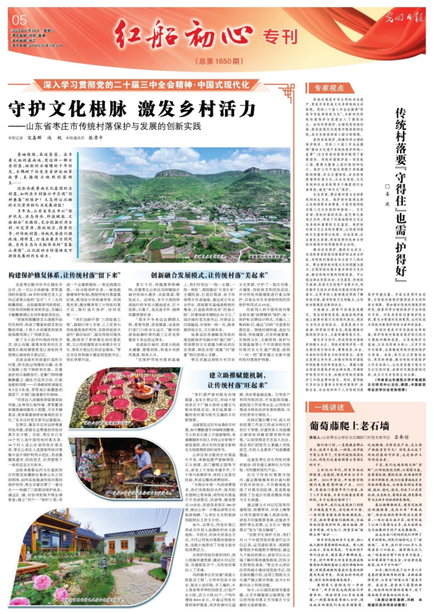 出台《枣庄市传统村落保护条例》,为全省首部传统村落保护的地方性法规,为促进传统村落保护工作可持续发展提供了法治方案。组织开展第一批枣庄传统村落名录申报认定工作,经镇(街)申请、区(市)推荐和专家评审,提请市政府公布了第一批枣庄传统村落名录,共12个村庄入选,覆盖5个区、8个镇,构建起“国家-省-市”三级保护体系,实现与国家、省级名录的有机衔接。积极进行经验总结,4项传统村落保护利用工作示范经验入选住建部传统村落保护利用可复制经验清单,1项做法获省委改革办发文推广,1项经验入选全省第二批传统村落保护典型经验做法。多维拓展传统村落宣传矩阵,系列宣传覆盖央级、部委、省级等权威平台,显著提升枣庄传统村落保护影响力与示范价值。