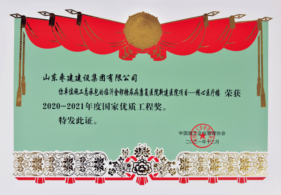 滕州建工等6家企业获批省级技术中心。中兴建安、连云山等8家企业获评山东省建筑业第一批“齐鲁建造”品牌,枣庄市政等12家企业被列入山东省建筑业全链条龙头骨干企业(第一批)。数建智能等11家企业、枣庄市台儿庄区人民医院迁建项目等10个项目被列入山东省建筑工程智能建造试点企业和试点项目。枣建装饰参建的新建福州至平潭铁路—平潭站项目获得中国建设工程鲁班奖。枣建集团承建的临沂金锣糖尿病康复医院新建医院项目—核心医疗楼获得2020-2021年度国家优质工程奖。