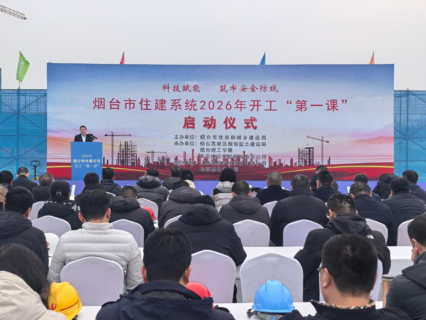 3月5日,烟台市住房和城乡建设局在高新区烟台理工学院新校区建设项目现场举行2026年全市住建系统“开工第一课”活动,活动以“科技赋能 筑牢安全防线”为主题,分为启动仪式和开复工会议两个阶段进行,活动传达学习了近期省、市安全生产有关会议精神和节后复工复产部署要求,对《建筑施工企业、工程项目安全生产管理机构设置及安全生产管理人员配备办法》进行了宣贯解读,要求全市住建系统及有关企业全面落实国家、省、市关于安全生产工作部署,深刻汲取近期省内外各类事故教训,压实部门监管责任、企业主体责任,严防各类生产安全事故发生,为全年建筑施工领域安全生产形势持续稳定打好坚实基础。市、县两级住建部门分管负责同志、有关科室单位负责同志,高新区管委分管负责同志,部分施工企业、监理企业代表共236人参加。